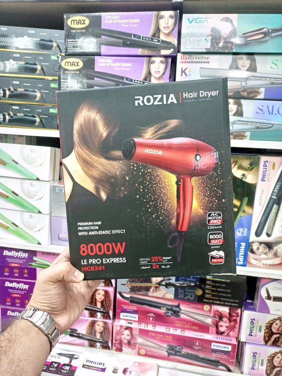 اگر به دنبال یک سشوار قدرتمند، سریع و بادوام هستی، مدل ROZIA HC8341 دقیقاً همون چیزیه که نیاز داری. این سشوار با توان ۸۰۰۰ وات واقعی و موتور حرفهای AC Motor Pro قدرتی فوقالعاده برای خشک کردن فوری و حالت دادن بینقص موها داره.