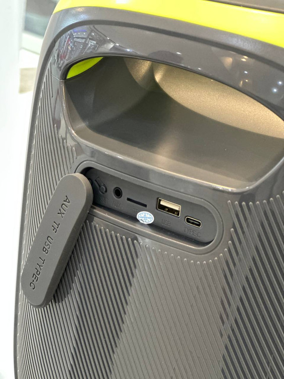 ⚙️ از نظر اتصالات نیز کاملاً کامل است؛ پشتیبانی از **بلوتوث، USB، کارت حافظه و AUX**، همچنین قابلیت **TWS** برای اتصال دو اسپیکر و ایجاد صدای استریو واقعی.