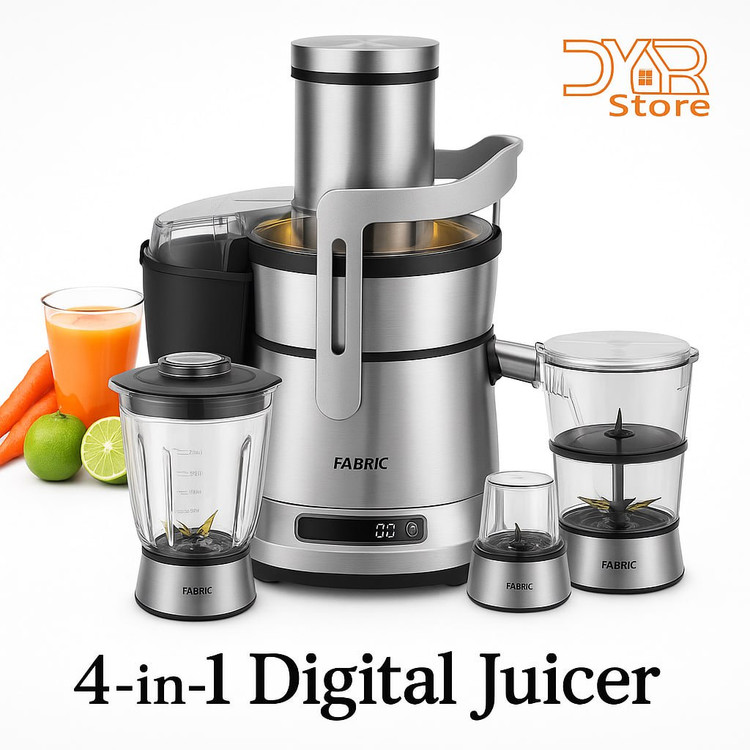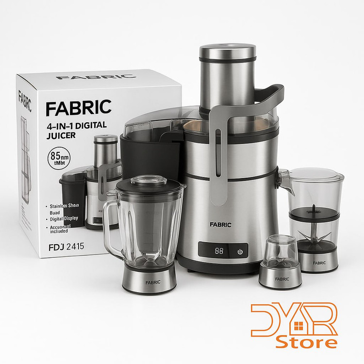با آبمیوهگیری دیجیتال ۴ کاره Fabric (FDJ 2415)، طعم واقعی میوهها را تجربه کنید! این دستگاه قدرتمند با موتور ۱۰۰۰ واتی تمام مس، به شما امکان میدهد در کمترین زمان، آبمیوهای تازه و خنک تهیه کنید.