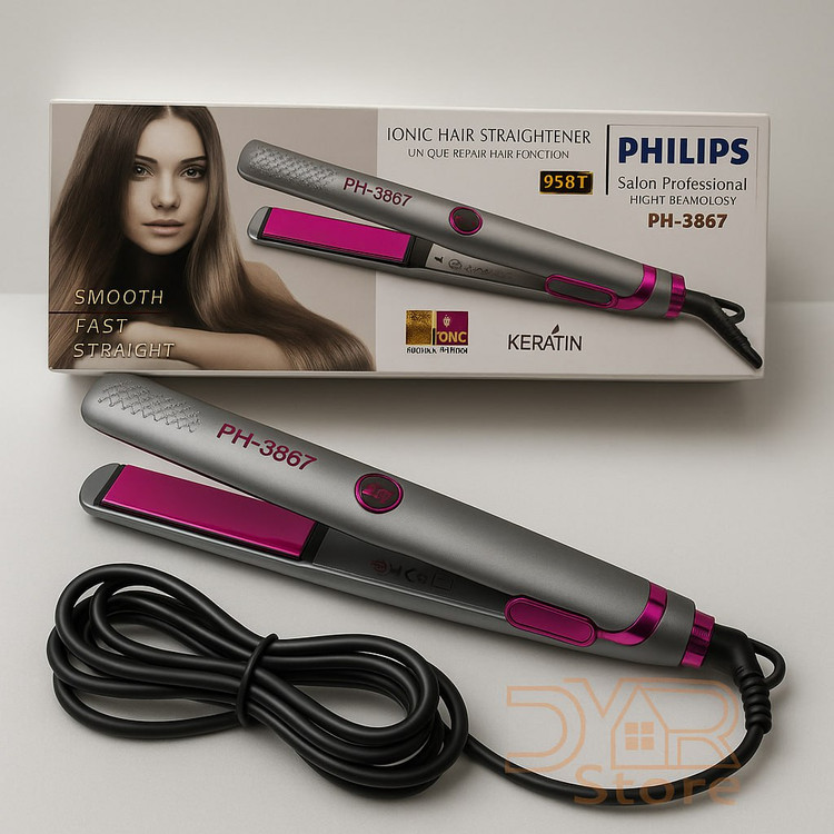 اتو مو فیلیپس PH-3867 با صفحات سرامیکی و تکنولوژی یونیک، مراقبت کامل از موها را تضمین میکند. این دستگاه با گرم شدن سریع و قابلیت تنظیم دما، مناسب تمام انواع مو و حتی مناسب سالنهای آرایشی است.
