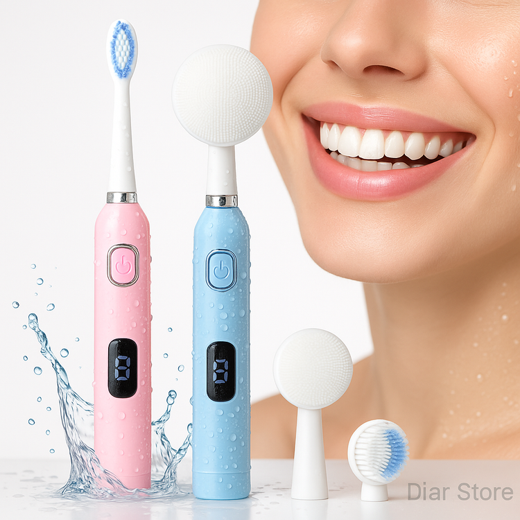 این مسواک و فیس براش جذاب با طراحی ارگونومیک و رنگبندی مدرن (صورتی و آبی)، نهتنها دندانهای شما را کاملاً تمیز میکند، بلکه با سری ماساژور مخصوص، پوست صورتتان را به لطافت و طراوت میرساند.