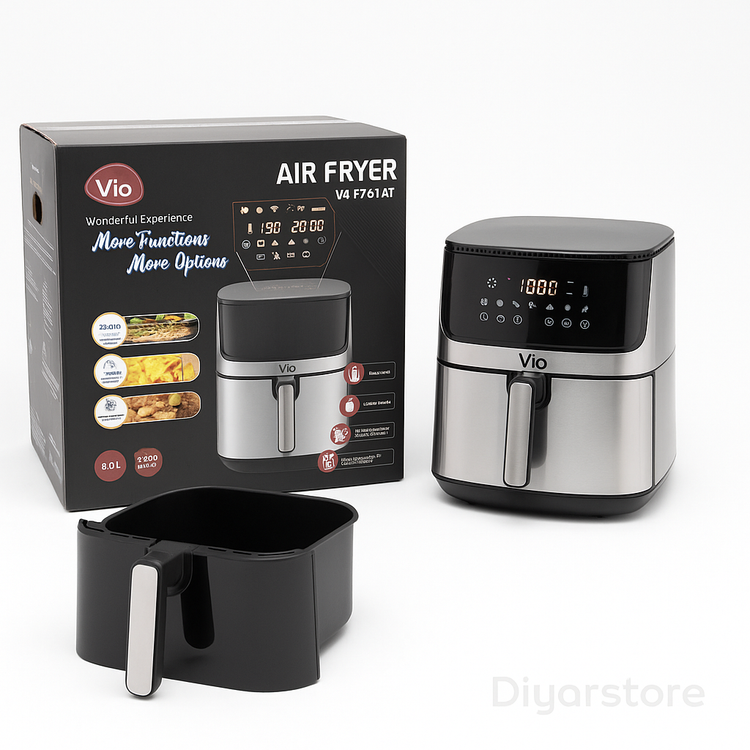 سرخکن بدون روغن Vio مدل VAF761A یکی از پیشرفتهترین سرخکنهای دیجیتال موجود در بازار است که با طراحی شیک و بدنهای مقاوم، آشپزی سالم و مدرن را برای شما آسان میکند. این دستگاه مجهز به صفحه نمایش لمسی کاملاً دیجیتال بوده و با ظرفیت واقعی ۸ لیتری، خانوادههای پرجمعیت را کاملاً راضی میکند.