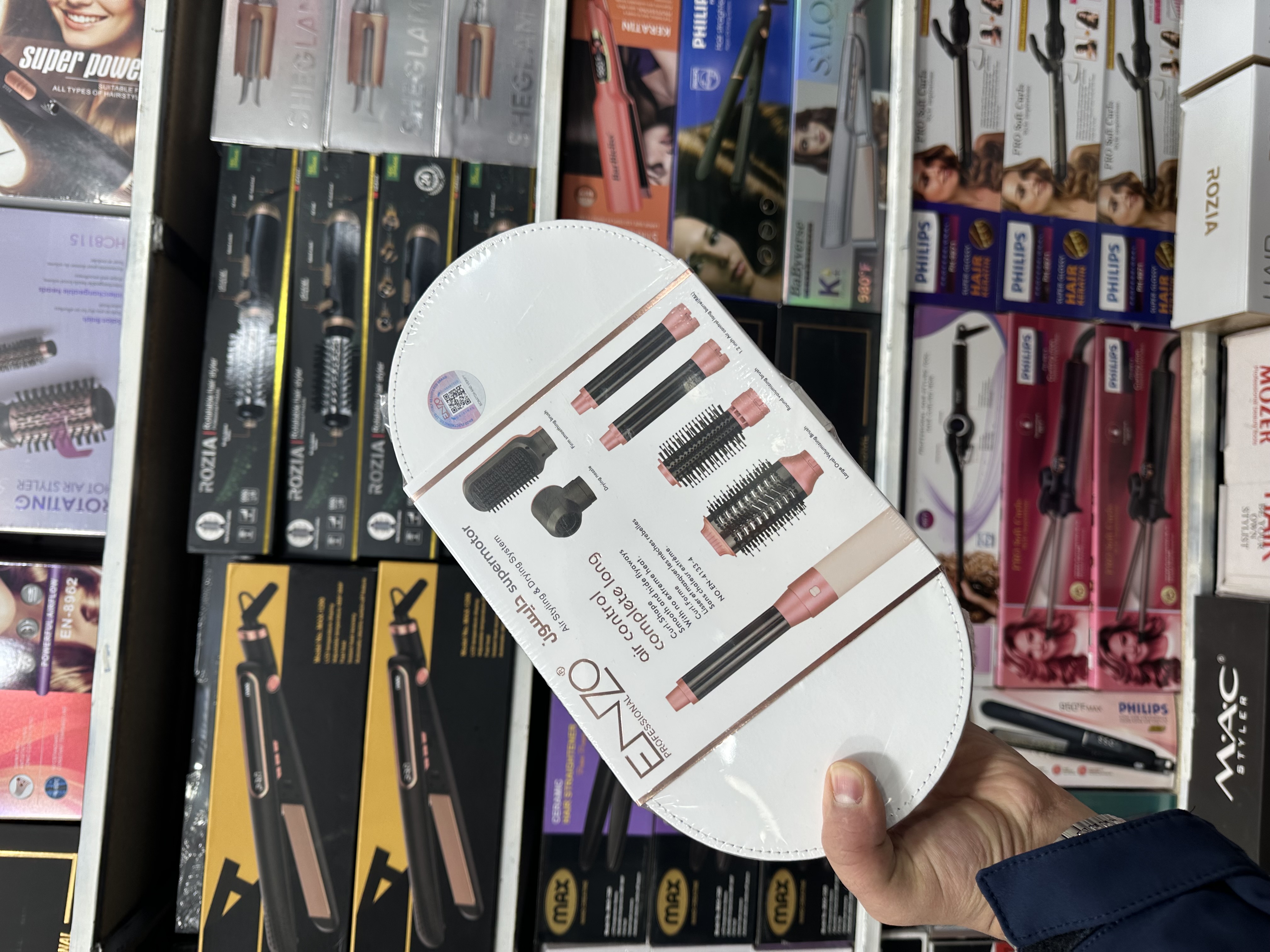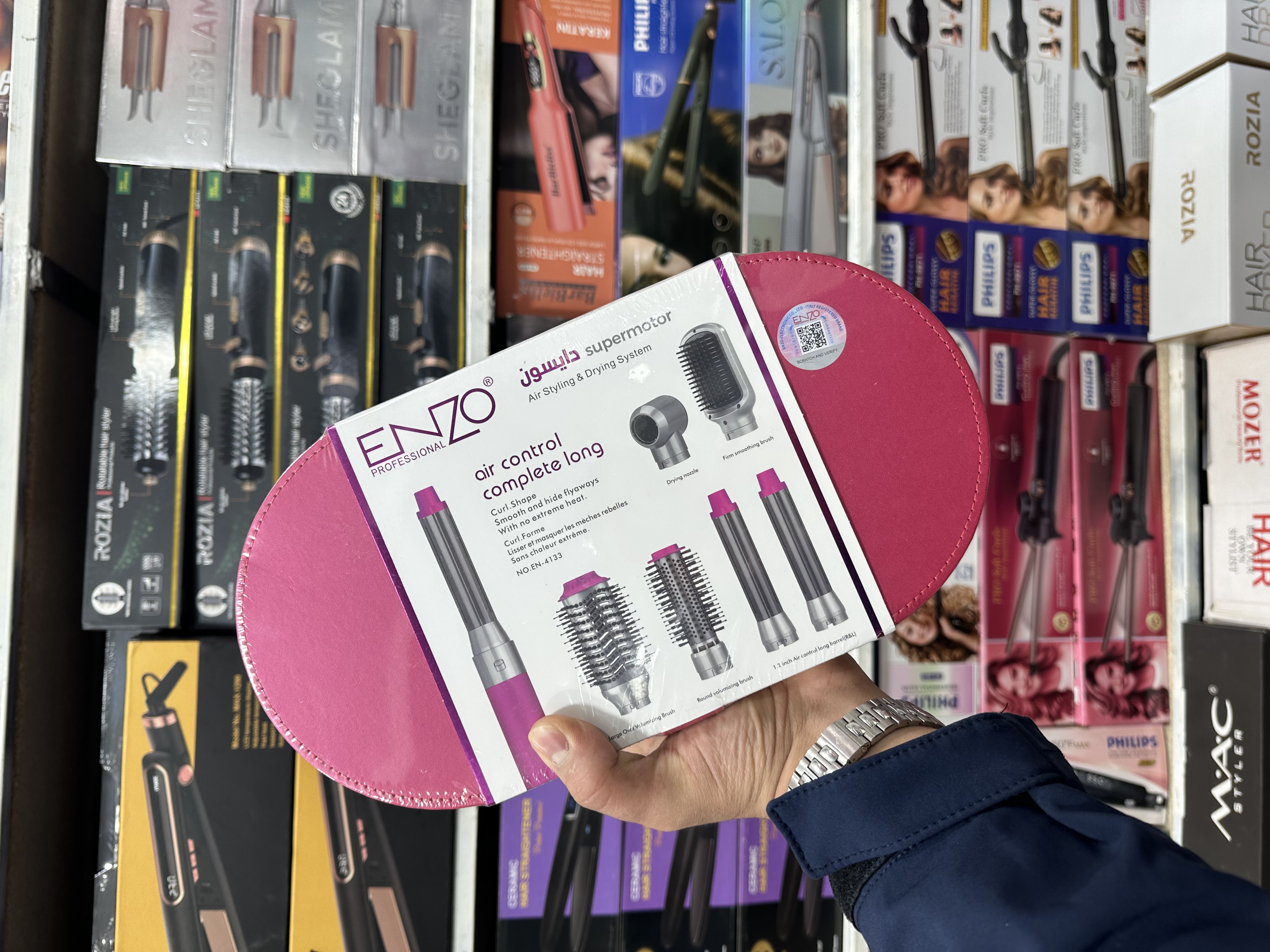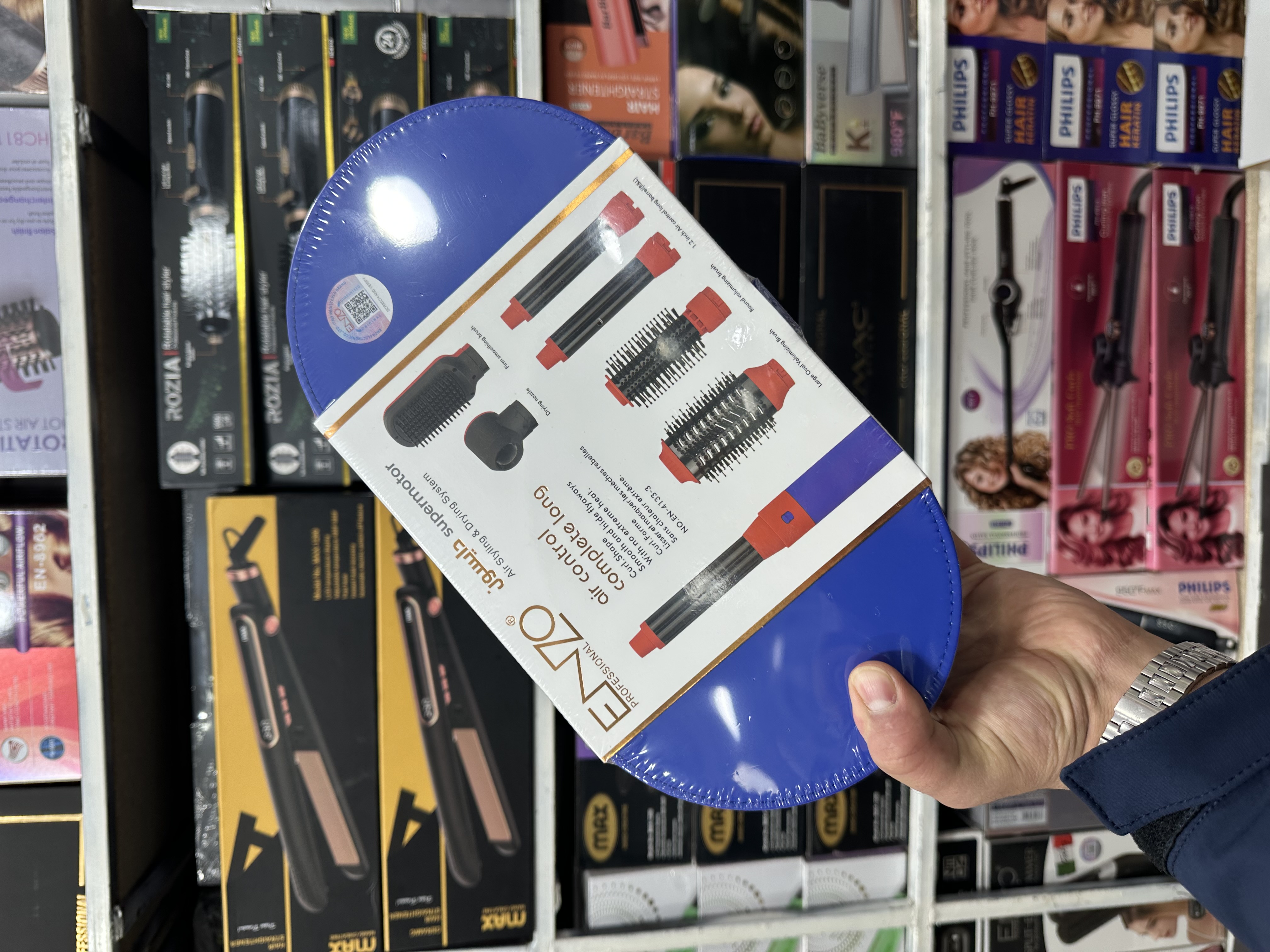 اقلام همراه: برس حجم دهنده. برس صاف کننده. نازل خشک کن. فرکننده ریز و درشت. نازل متمرکز کننده.