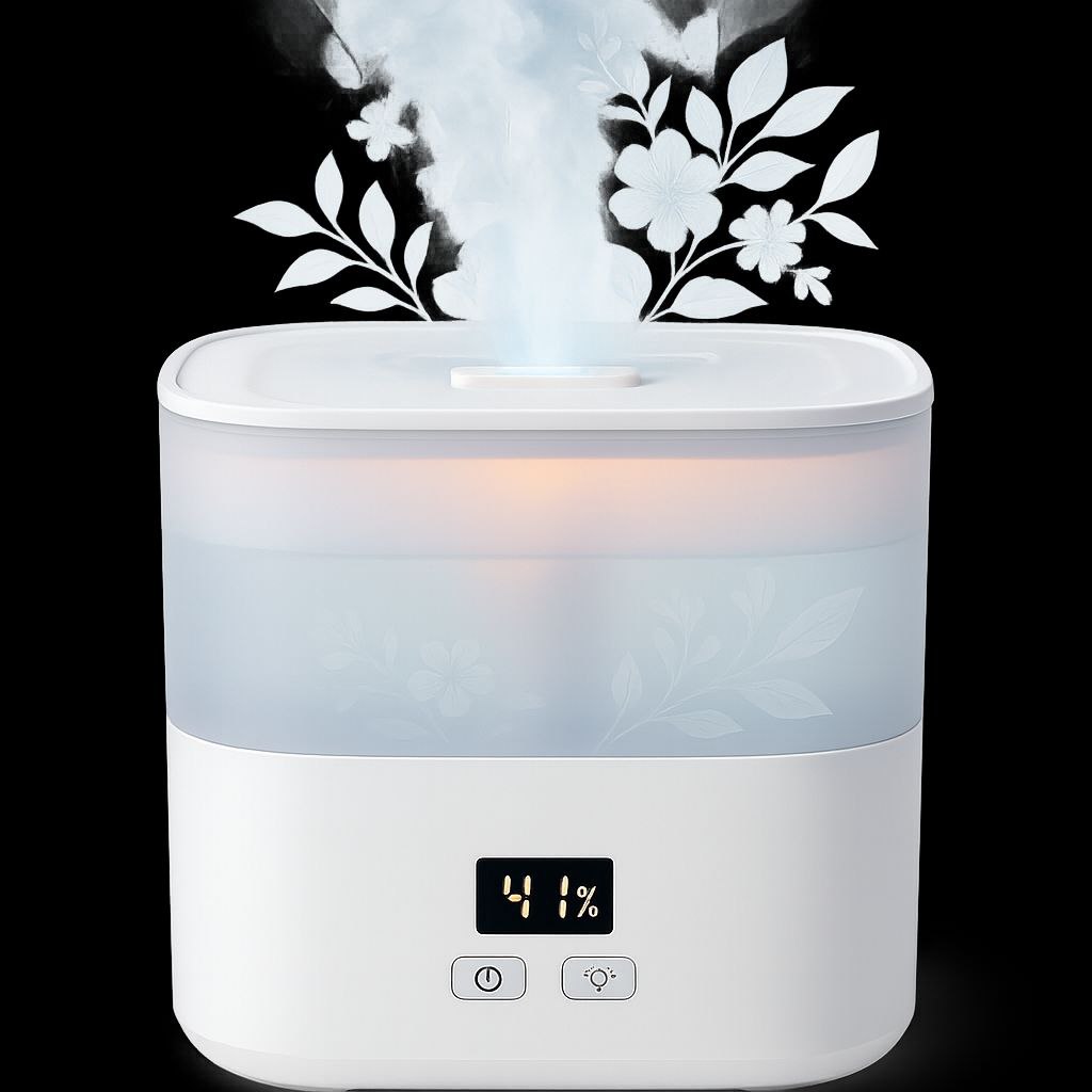 ویژگیهای ویژه: تولید مه میکرونی بسیار ریز که رطوبت را به طور یکنواخت پخش میکند، همراه با نور گرم شبانه برای ایجاد محیطی آرامشبخش.